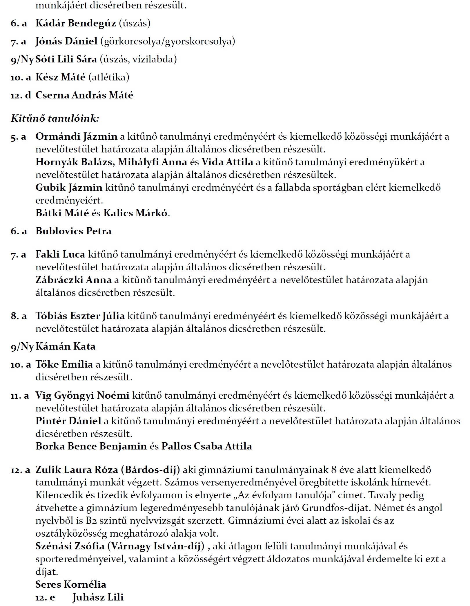 1. A névjegyzéken, a felvételi rangsorba állított tanulók oktatási azonosítójukkal vagy a jelentkezési lapon megadott jeligével szerepelnek.