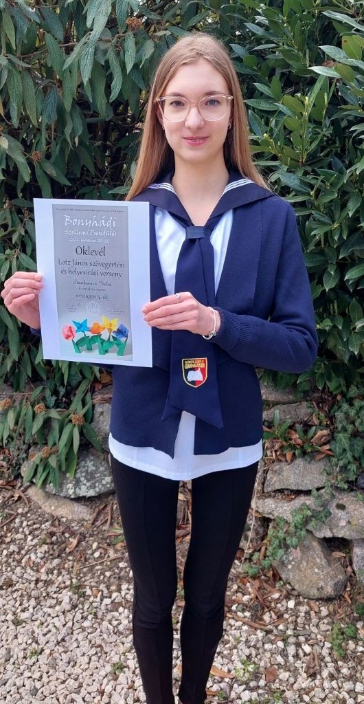 Hatalmas siker! Stankovics Júlia (8. a) 4. helyezést ért el a Lotz János szövegértési és helyesírási verseny országos döntőjében!
